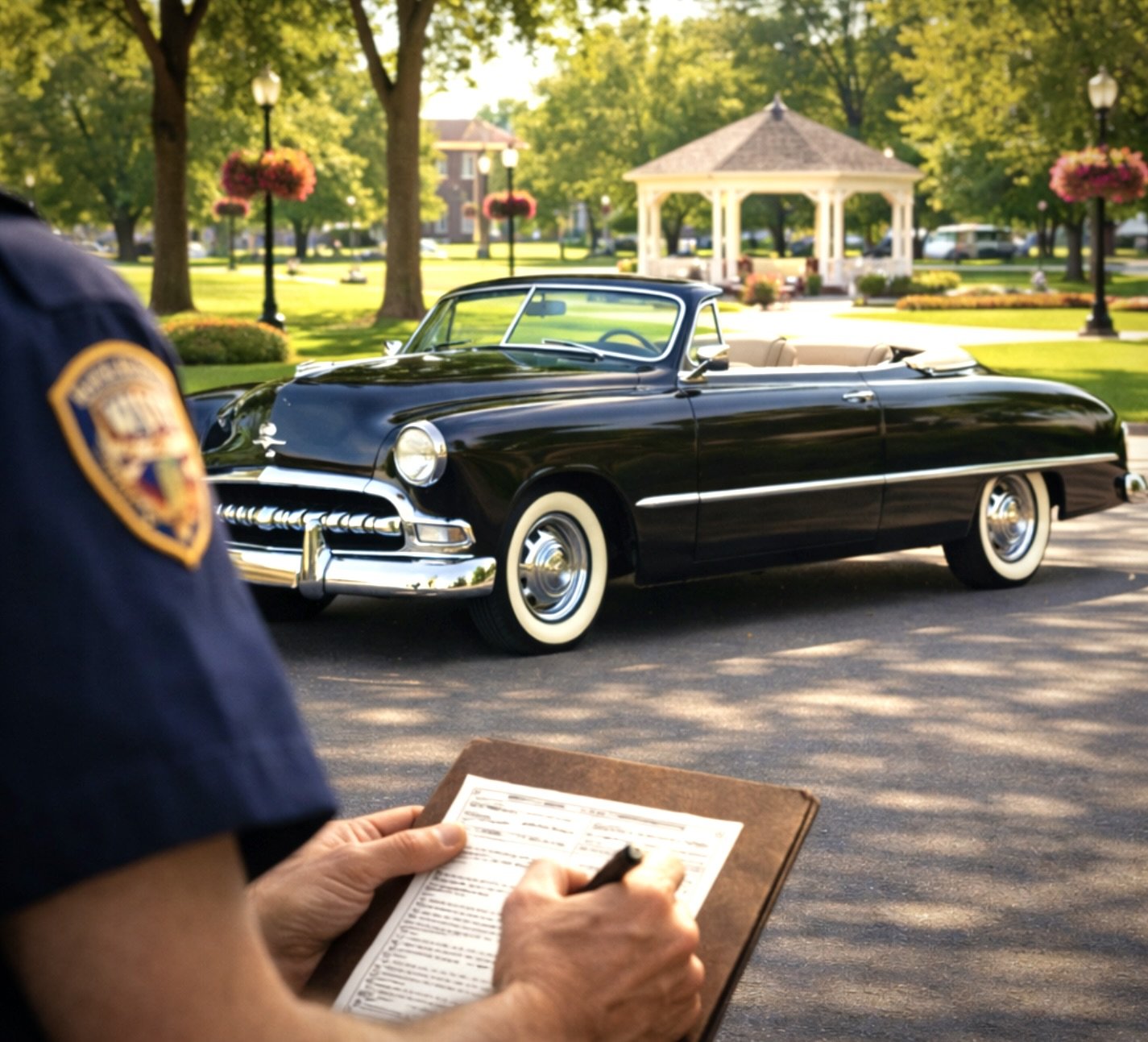 In his college days, my dad was once summoned to traffic court. The way he told the story, it was because his ’49 Ford convertible didn’t have a “conservative” look or sound. Police would unfairly pull him out of the even flow of traffic and issue him tickets. Whatever he meant by that, it seems he was in danger of losing his license.